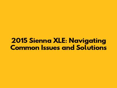 Owning a 2015 Toyota Sienna XLE can be a rewarding experience, providing a safe, comfortable, and versatile vehicle for your family. By understanding the common problems associated with this minivan and following the maintenance tips outlined in this article, you can help keep your Sienna running smoothly for years to come. Remember, regular maintenance, timely repairs, and proactive monitoring of your vehicle's performance are key to preventing major issues. Don't hesitate to seek professional help when needed. Taking care of your Sienna will not only ensure its reliability but also maintain its value. Drive safe and enjoy the ride!