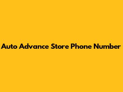 Auto Advance Store Phone Number