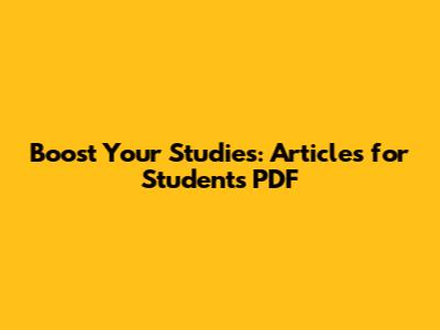 Boost Your Studies: Articles For Students PDF
