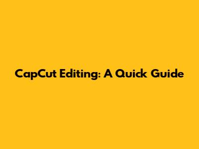 CapCut Editing: A Quick Guide