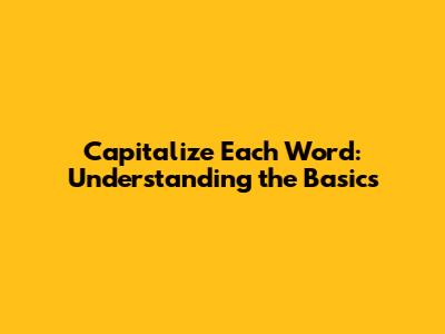 Capitalize Each Word: Definition And Usage