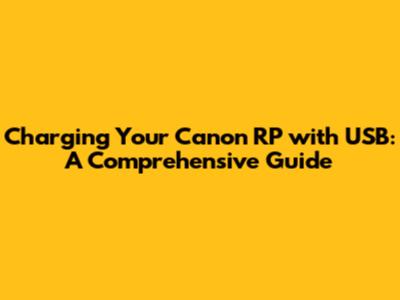 Charging Your Canon RP With USB: A Comprehensive Guide