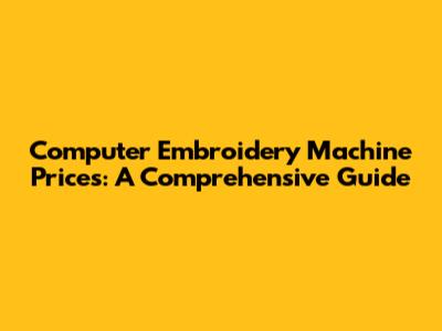 Computer Embroidery Machine Prices: A Comprehensive Guide