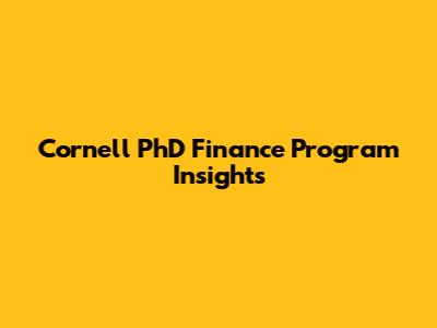 Cornell PhD Finance Program Insights
