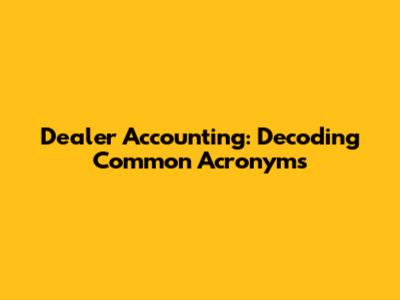 Navigating the world of dealer accounting can feel like deciphering a secret code, especially with all the acronyms flying around. This article will break down some of the most common acronyms you'll encounter, providing clarity and helping you understand the financial language of the dealership world. Understanding these acronyms is crucial for anyone involved in the financial operations of a dealership, from accountants and managers to owners and even sales staff. Let's dive in and demystify these abbreviations, making your financial journey a little smoother and a lot more informed. After all, in the fast-paced environment of a dealership, quick comprehension is key to efficient and effective decision-making.