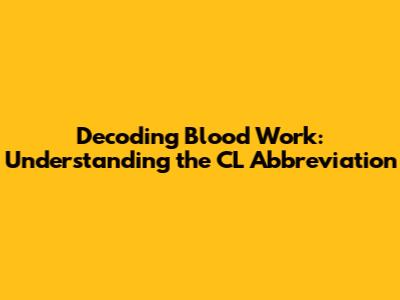Decoding Blood Work: Understanding The CL Abbreviation