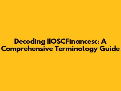 Decoding IIOSCFinancesc: A Comprehensive Terminology Guide