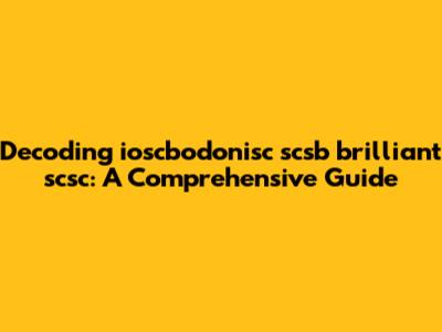 Decoding Ioscbodonisc Scsb Brilliant Scsc: A Comprehensive Guide