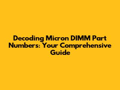 Hey guys! Ever looked at a Micron DIMM (Dual In-line Memory Module) and felt like you needed a secret decoder ring? Well, you're not alone! These little memory sticks are packed with information, all encoded in their part numbers. Understanding these part numbers is super helpful for a bunch of reasons – like figuring out what kind of memory you have, what its specs are, and whether it'll play nice with your system. This guide is designed to be your go-to resource for decoding Micron DIMM part numbers, breaking down the code, and making sure you know what you are looking at. We'll dive deep into the meaning of each section of the part number, so you can confidently identify and understand your memory modules. Ready to become a DIMM decoding pro? Let's jump in!