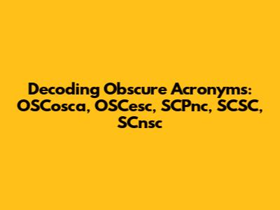 avigating the world of acronyms can sometimes feel like deciphering an ancient language. We encounter these abbreviations everywhere, from technology and science to business and everyday conversations. But what happens when you stumble upon a set of acronyms that seem to have no readily available meaning? That's the challenge we're tackling today with OSCosca, OSCesc, SCPnc, SCSC, and SCnsc. Let's embark on this journey of linguistic exploration and attempt to unravel the mysteries behind these enigmatic strings of characters.