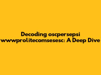 To begin, let's break down "oscpersepsi wwwprolitecomsesesc" into its individual components. We have "oscpersepsi," which appears to be a single word, and then "wwwprolitecomsesesc," which looks like a domain name or a URL of some kind. Analyzing each part separately can give us clues about the overall meaning or purpose.