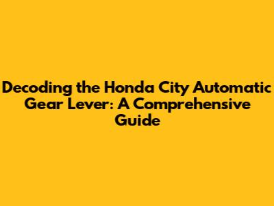 Decoding The Honda City Automatic Gear Lever: A Comprehensive Guide