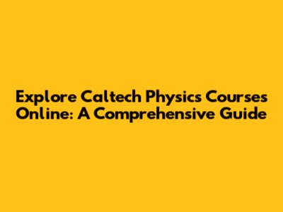 Explore Caltech Physics Courses Online: A Comprehensive Guide