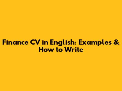Finance CV In English: Examples & How To Write