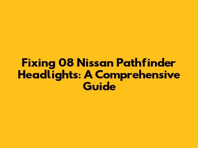 Fixing 08 Nissan Pathfinder Headlights: A Comprehensive Guide