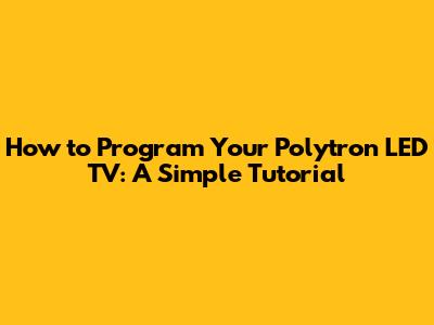 How To Program Your Polytron LED TV: A Simple Tutorial