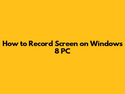 How To Record Screen On Windows 8 PC