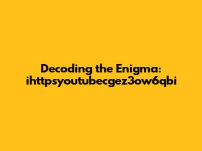 Ihttpsyoutubecgez3ow6qbi: Decoding The Enigma