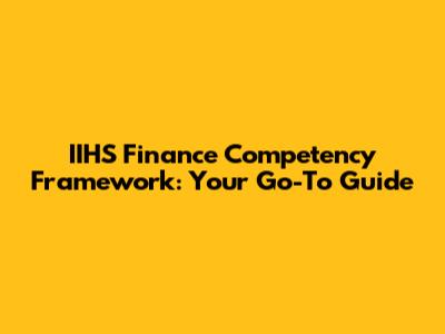 IIHS Finance Competency Framework: A Comprehensive Guide