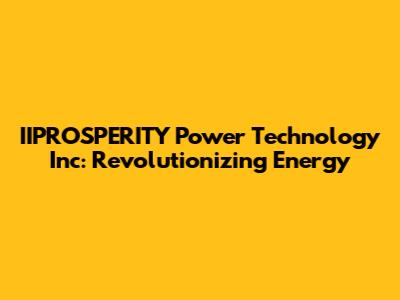 IIPROSPERITY Power Technology Inc: Revolutionizing Energy