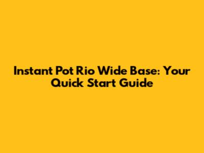 Instant Pot Rio Wide Base: Your Quick Start Guide