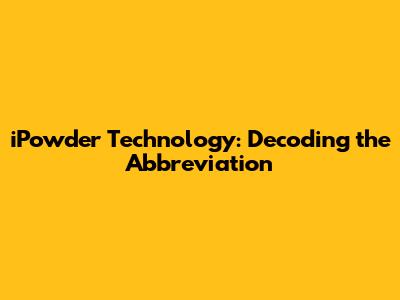 IPowder Technology: Decoding The Abbreviation