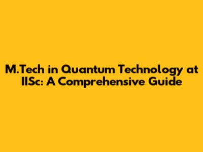 M.Tech Quantum Technology At IISc: A Comprehensive Guide