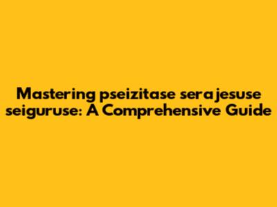 Mastering Pseizitase Serajesuse Seiguruse: A Comprehensive Guide
