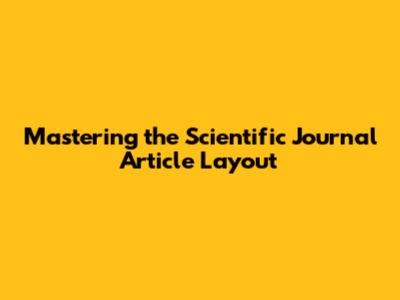 Mastering The Scientific Journal Article Layout