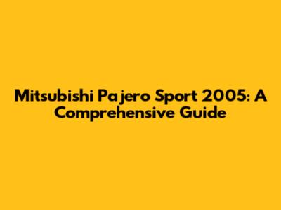 Mitsubishi Pajero Sport 2005: A Comprehensive Guide