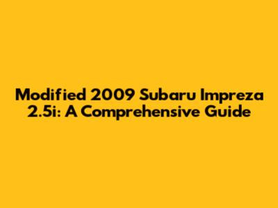 Modified 2009 Subaru Impreza 2.5i: A Comprehensive Guide