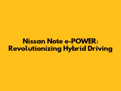 Nissan Note E-POWER: Revolutionizing Hybrid Driving