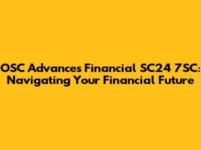 OSC Advances Financial SC24 7SC: Navigating Your Financial Future