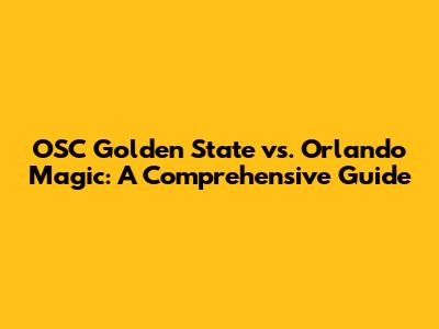 OSC Golden State Vs. Orlando Magic: A Comprehensive Guide