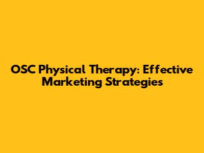 OSC Physical Therapy: Effective Marketing Strategies