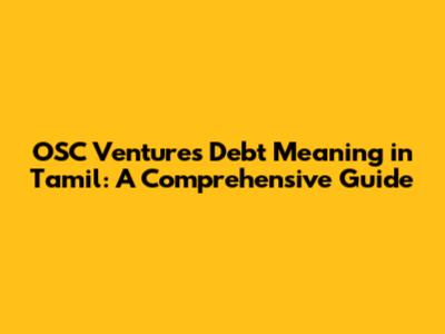 OSC Ventures Debt Explained: A Tamil Guide