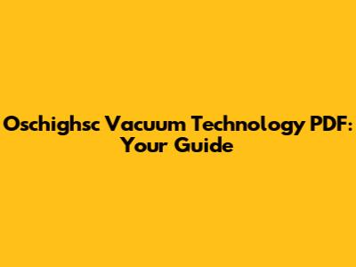 Oschighsc Vacuum Technology PDF: Your Guide