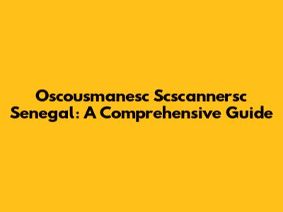 Oscousmanesc Scscannersc Senegal: A Comprehensive Guide