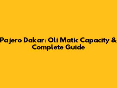 Pajero Dakar: Oli Matic Capacity & Complete Guide