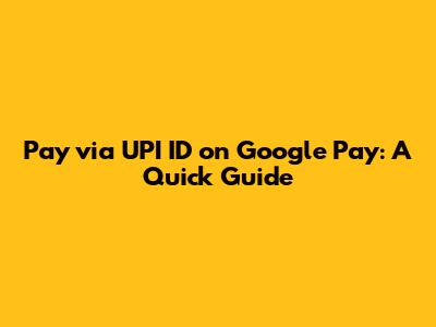 Pay Via UPI ID On Google Pay: A Quick Guide