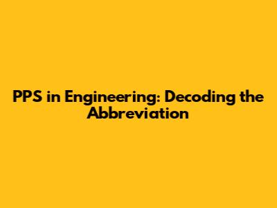 What Does PPS Stand For in Engineering?