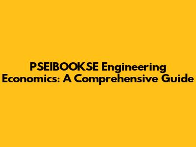 PSEIBOOKSE Engineering Economics: A Comprehensive Guide