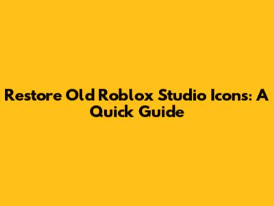 Restore Old Roblox Studio Icons: A Quick Guide