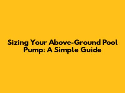 Sizing Your Above-Ground Pool Pump: A Simple Guide