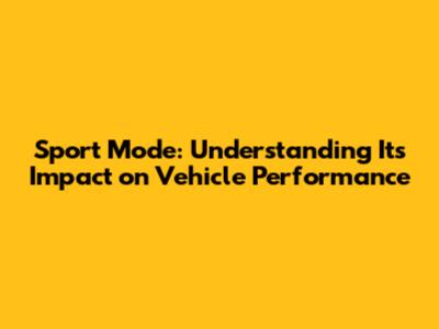 Sport Mode: Understanding Its Impact On Vehicle Performance