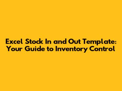 Stock Management Made Easy: Excel In & Out Template