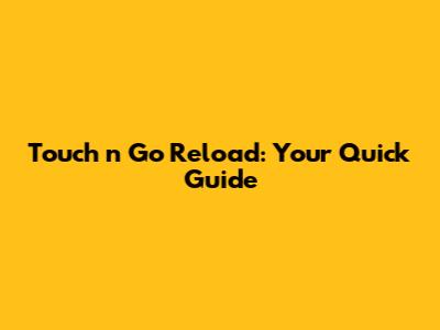 Touch 'n Go Reload: Your Quick Guide
