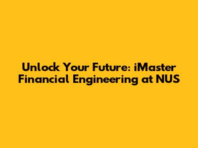 Unlock Your Future: IMaster Financial Engineering At NUS