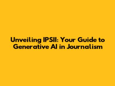 Unveiling IPSII: Your Guide To Generative AI In Journalism