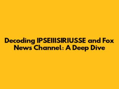 Hey guys, let's dive into something intriguing, shall we? Today, we're going to unpack the mysteries surrounding IPSEIIISIRIUSSE and its connection, if any, to the powerhouse that is the Fox News Channel. This isn't just about throwing some names around; we're going to get down to brass tacks, exploring the potential links, the buzz, and what it all means for you, the informed consumer of news and information. Buckle up, because we're about to embark on a journey that will hopefully clear up some confusion and maybe even spark a new perspective.